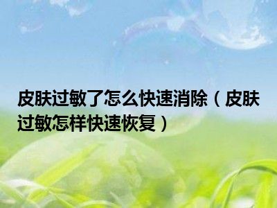 皮肤过敏了怎么快速消除(皮肤过敏怎样快速恢复)